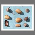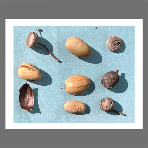 Various parts of the acorn, collected on a wall, are to be captured in a picture before they are exposed to the natural process of decay. Even as the image is being created, it becomes clear that the shapes emerging on the paper will differ greatly from the object they are supposed to depict. After the objects are removed from the sheet and it is washed with water, the resulting abstract shapes, with their soft and open contours, will detach themselves and open up a poetic space for new interpretations and associations.