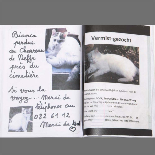 Please Look in the Basement is a quirky collection of 218 posters of lost cats, dogs, birds, and other pets collected around Ghent, Antwerp, and Brussels. Writer and artist Maarten Inghels called up the numbers to discover the fate of these lost animals. Inside the book are 35 stories in French, Dutch, and English. Poster collectors: Maarten Inghels, Jan Lemaire, Nicolas Marichal, Denis Meyers, Jean-Michel Meyers. Please Look in the Basement brings laughter, sadness, curiosity, and surprise, connecting with audiences across the globe.
