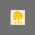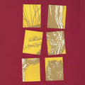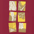 The calendar consists of twelve fragments of an apple tree—each month reveals a new detail. It contains twelve three-colour prints (two colours linocut, one letterpress)