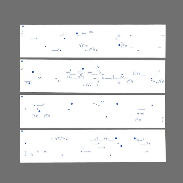 A loose leaf visual score based on Clara’s Paralingual Index, a notation device that denotes extra-lingual utterances such as breaths, sighs, pauses and mutters. Mosconi uses this transcription method to record conversations around bilinguality and translation. Here, she has transcribed a conversation with Sara, which can be recited, read, or displayed by the reader. With an accompanying essay from Mosconi.